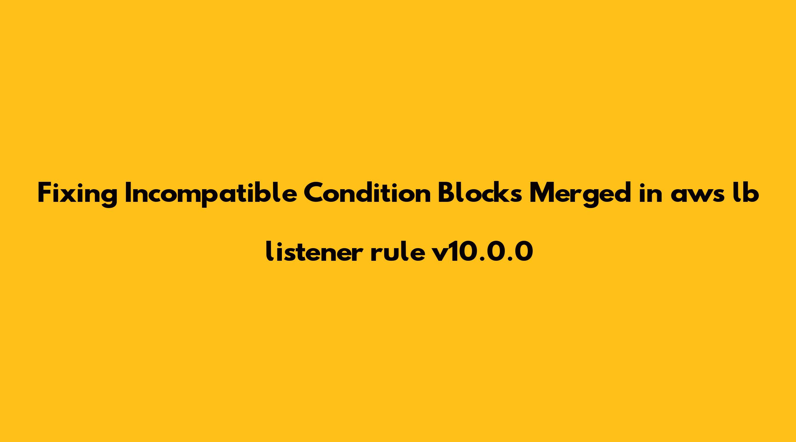 module to v10.0.0, specifically the issue of incompatible condition blocks being merged in aws_lb_listener_rule