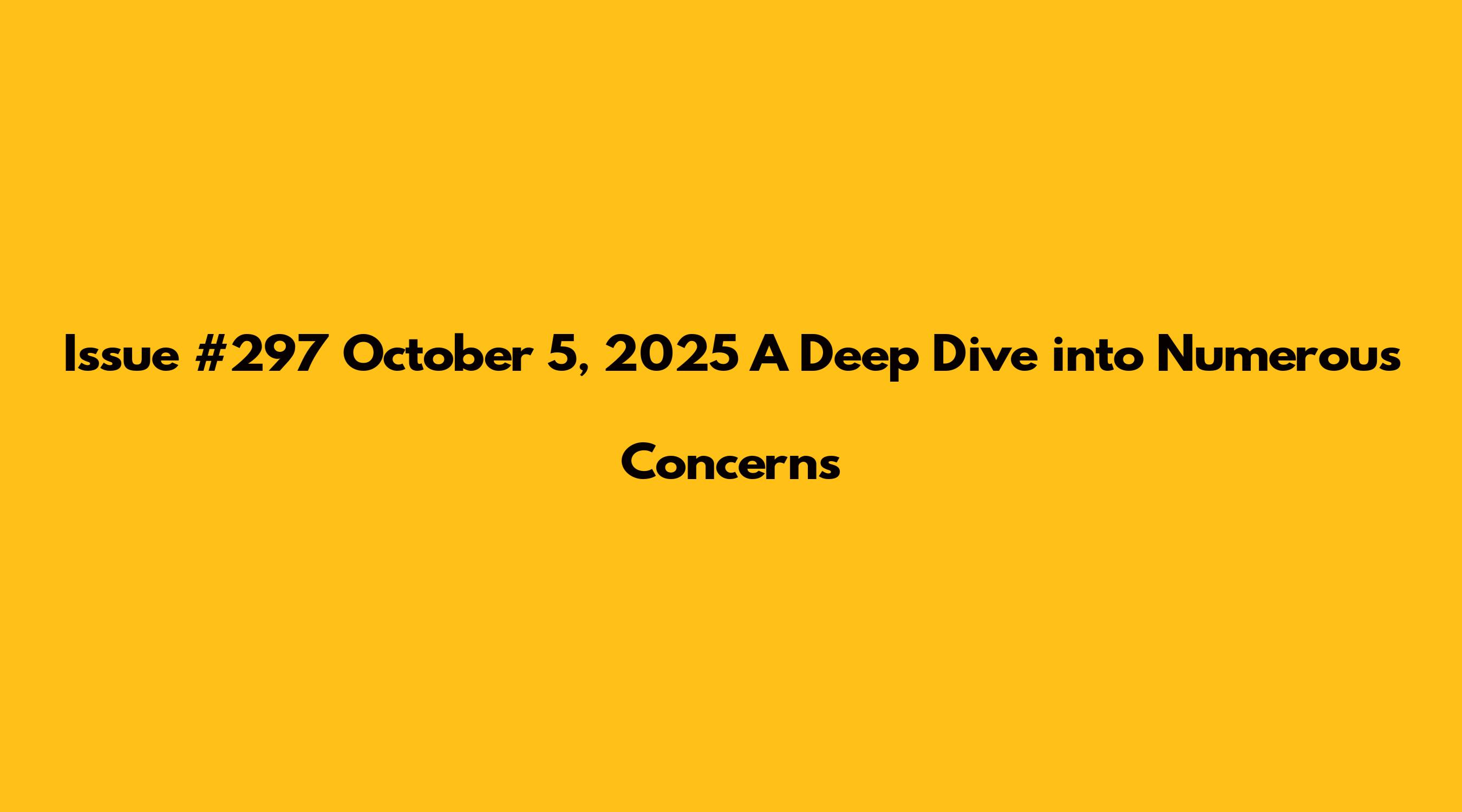 Issue #297 October 5, 2025 A Deep Dive Into Numerous Concerns